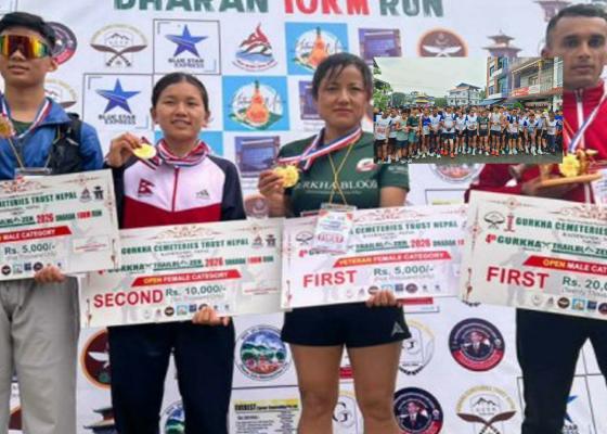 छाल खवरधरान,१४चैतः धरानमा आयोजित चौथो संस्करणको गोर्खा ट्रेल ब्लेजर दौड प्रतियोगिता २०८२ सम्पन्न भएको छ । गोर्खा सिमेट्रीज ट्रष्ट नेपालको आयोजनामा शनिवार धरानमा प्रतियोगिता सम्पन्न भएको हो । गोर्खा ...