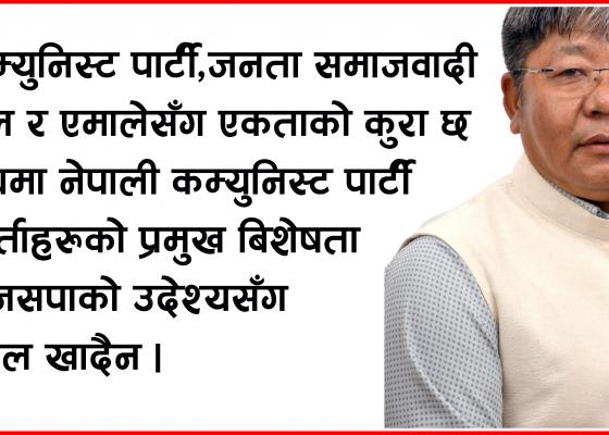 छाल खवर धरान,८ कार्तिक ः कम्युनिस्ट घटकहरुबीच एकताको प्रयास चलिरहेका बेला नेकपा माओवादी केन्द्र र नेकपा एकीकृत समाजवादीबीच पार्टी एकीकरण हुने लगभग निश्चित भएको छ । यो एकतामा नेत्रविक्रम चन्द विप ...