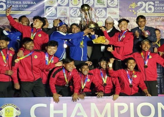 छाल खवर धरान,२ फागुनः धरानमा जारी २६औँ संस्करणको बुढासुब्बा गोल्डकपको उपाधि प्लानिङ ब्वाइज क्लब काठमाडौँले जित हासिल गरेको छ । शनिवार धरान रङ्गशालामा भएको फाइनल खेलमा प्लानिङ ब्याइजले चर्च ब्वाइज युन ...