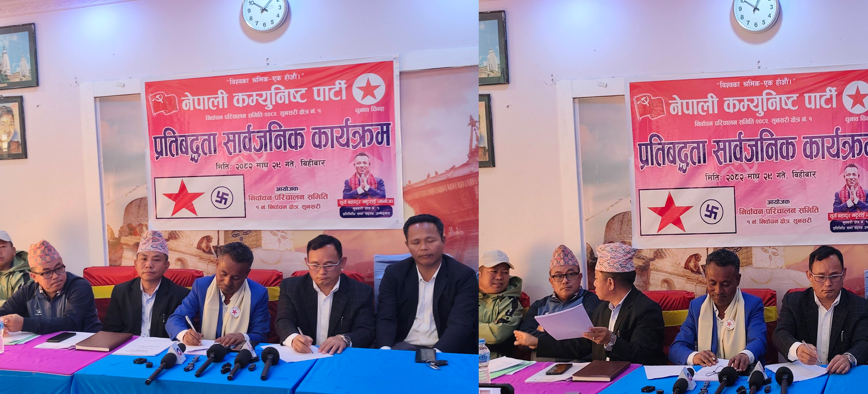 छाल खवर धरान, २९ माघः संघीय प्रणाली सुदृढीकरण, पारदर्शी बजेट प्रणाली, कृषि आधुनिकीकरण र पर्यटन प्रवर्द्धनलाई प्राथमिकतामा राख्दै नेपाली कम्युनिष्ट पार्टी ९नेकपा० ले सुनसरी निर्वाचन क्षेत्र नं। १ का लागि समग्र विकासमुखी १५ बुँदे स्थानीय प्रतिबद ...