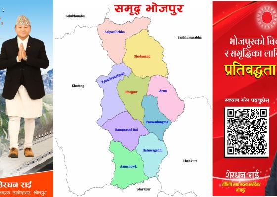 छाल खवर धरान,१३, फागुन ः नेकपा (एमाले)को तर्फबाट भोजपुरका प्रतिनिधि सभा सदस्य उम्मेदवार कोशी प्रदेशका पूर्व मुख्यमन्त्री शेरधन राईले आफ्नो प्रतिबद्धता पत्र सार्वजनिक गरेका छन् । नेकपा (एमाले) का सचिव समेत रहेका राईले सार्वजनिक गरेको प्रतिबद्धता पत्रमा पार्टीले ‘समृद्ध नेपाल, सुखी नेपाली&rsquo ...